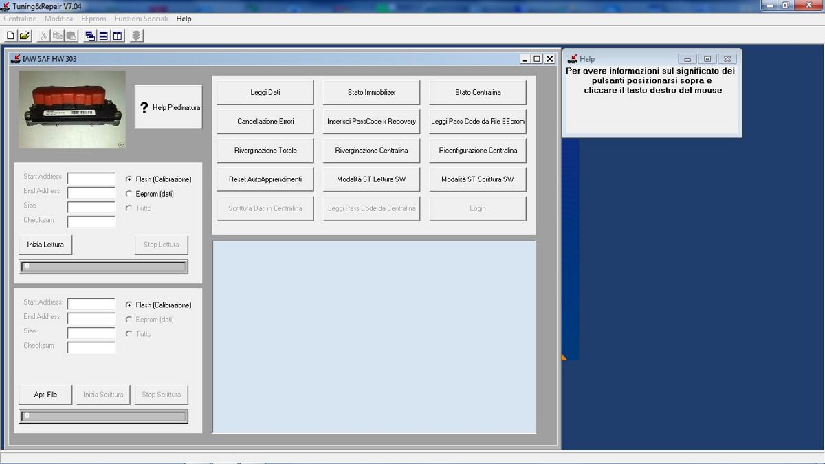 Questo Tool permette di riverginare molte centraline attualmente montate sul parco auto circolante e aiuta il riparatore nel risoluzione dei problemi giornalieri. Tra le utilità la possibilità di fornire la key card, rendere parzialmente e/o totalmente inattivo il code.